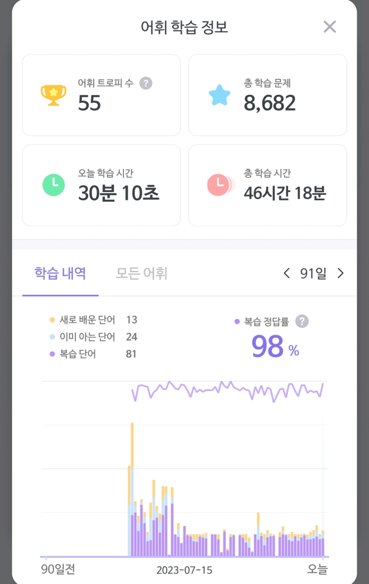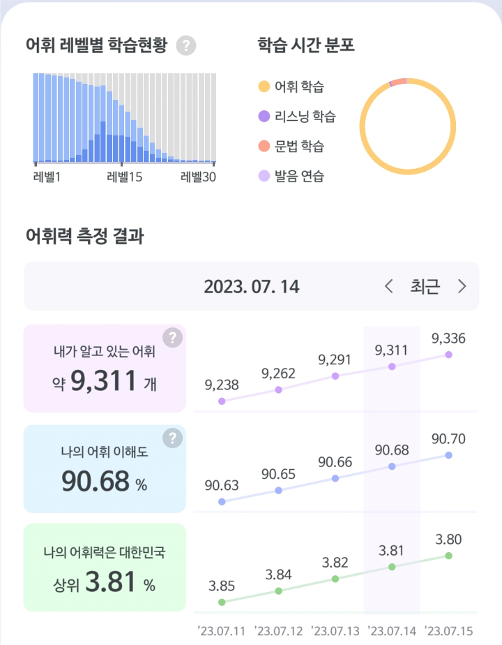 | [영어] D+65 1일 100단어 챌린지 (feat. 말해보카) 23.07.14 (0) | 2023.07.15 |