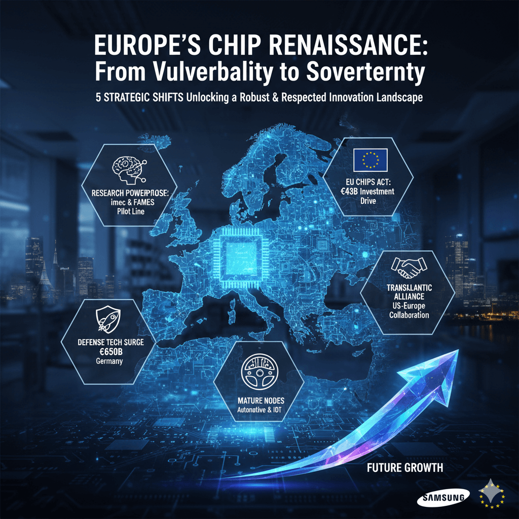 Q. 유럽이 반도체 제조에서 첨단 노드보다 성숙 노드에 집중하는 이유는 무엇인가요? A. 유럽은 최첨단 3나노, 2나노 공정에서 대만의 TSMC나 한국의 삼성과 경쟁하기보다, 자동차와 방위산업에서 여전히 핵심적인 28나노 이상의 성숙 노드 기술에 집중하는 것이 전략적으로 현명하다고 판단했습니다. 이는 유럽 제조업의 현실과 부합하며, 공급망 안보 측면에서도 중요한 가치를 지닙니다. Q. European Chips Act의 430억 유로 투자는 실제로 얼마나 효과를 보고 있나요? A. 입법 이후 2년이 지났지만 Intel과 Wolfspeed의 대규모 투자 계획이 무산되는 등 발표된 프로젝트는 기대에 미치지 못했습니다. 현재 STMicroelectronics, Infineon, TSMC, GlobalFoundries 등 소수 기업만이 주요 수혜자로 꼽히며, 2030년 세계 시장 점유율 20% 목표는 비현실적이라는 평가도 있습니다. Q. 투자자 관점에서 유럽 반도체 기업에 투자할 때 주의할 점은 무엇인가요? A. 유럽은 AI 테크 랠리에서 다소 비켜나 있어, VGK 같은 유럽 ETF보다는 ASML 같은 특정 강점을 가진 개별 종목 위주의 투자가 유리합니다. 글로벌 자금이 AI에 집중되는 상황에서 유럽 주식은 저평가 자산 발굴의 기회가 될 수 있지만, AI 내러티브를 등에 업은 급격한 상승은 제한적일 것으로 예상됩니다. --- [출처] SEMI Blog: https://www.semi.org/en/blogs/from-crisis-to-opportunity-europes-semiconductor-awakening